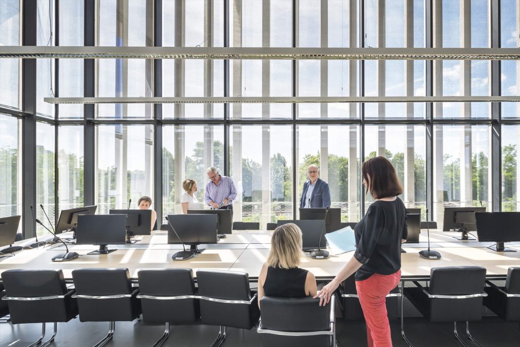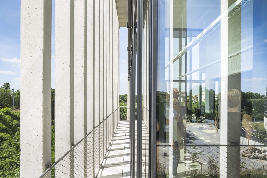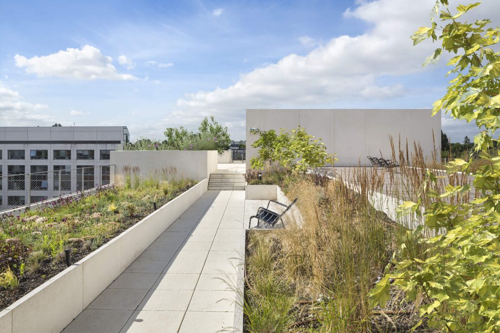 On the top floor, a communal space gives access to the rooftop terrace garden and offers a place of retreat for the building’s users.