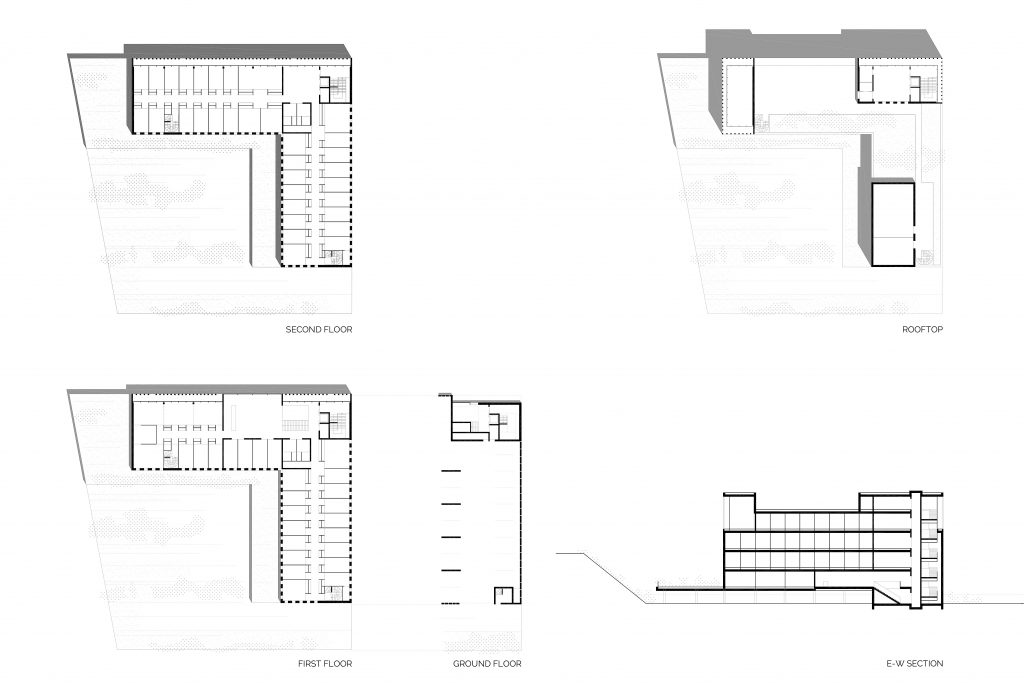 • In the eastern, southern and western façades, the sunrays and proximity to the banks of the railway line mean the interiors need to be protected, using a series of uniform permeations in the façade.