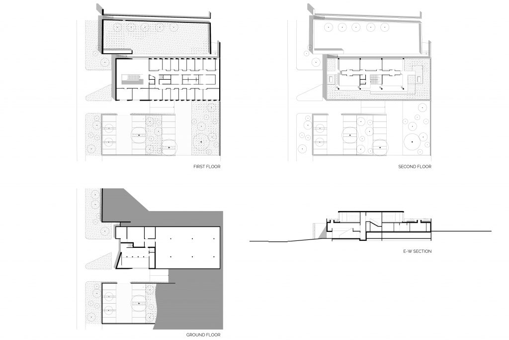 Respecting the subdivision of the urban context, the project organises the site into three parts.